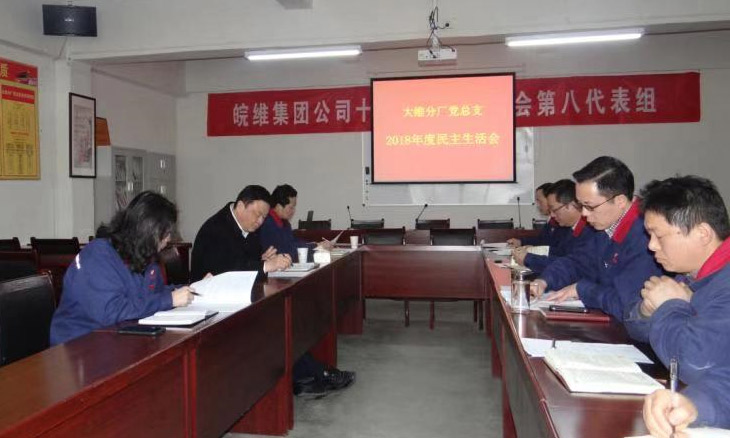 2月21日14:00,大维分厂导班子召开2018年度民主生活会,hth体育网党委书记、董事长吴福胜,股份公司总经理助理唐成宏,党委工作部部长许玉萍参加会议。