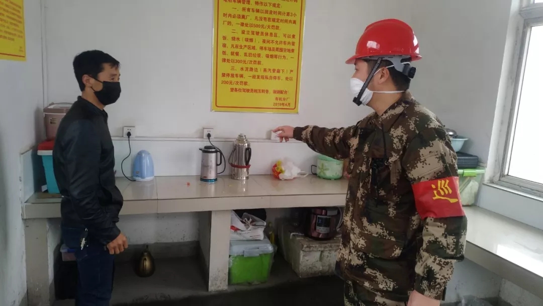 保卫处成立了以支部书记为队长的疫情防控督查巡逻队,下设5个以党员骨干组成的巡逻组,每天早上7:20前到岗,每日对厂区全覆盖、无死角的巡逻检查。